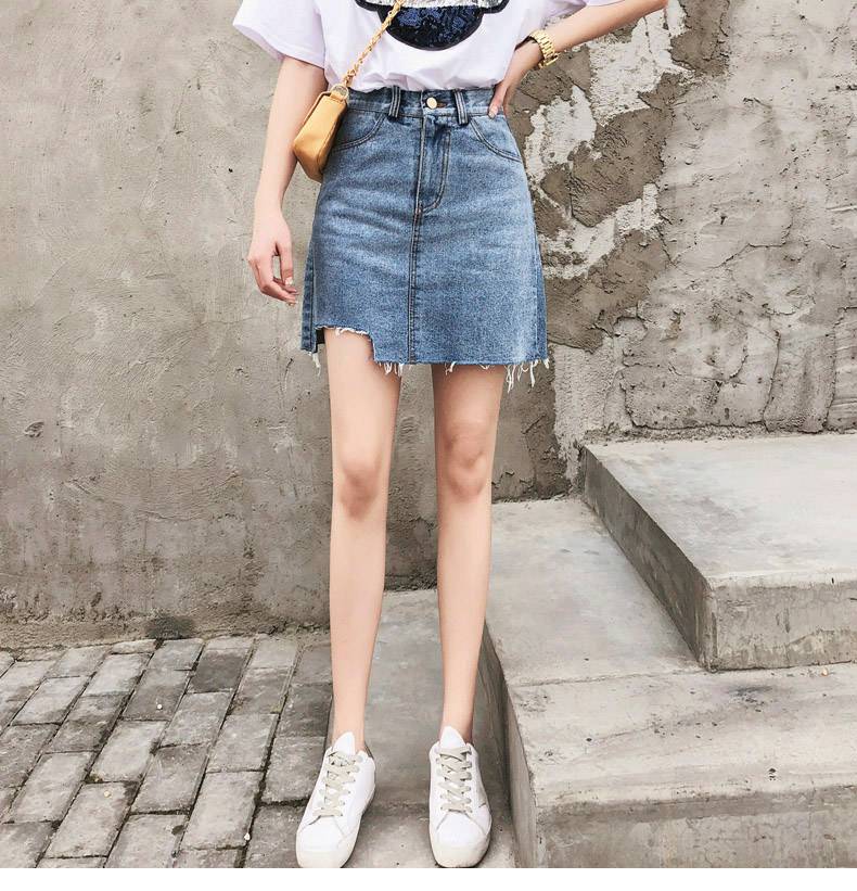 2019春夏新款女高腰牛仔裙半身裙A字款不规则包臀裙ins超火的短裙 99.00 已售:1件