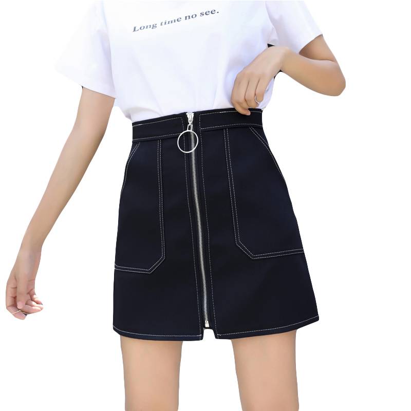 2019夏新款流行裙子高腰a字半身裙女夏天黑色拉链包臀裙学生短裙 99.00 已售:0件