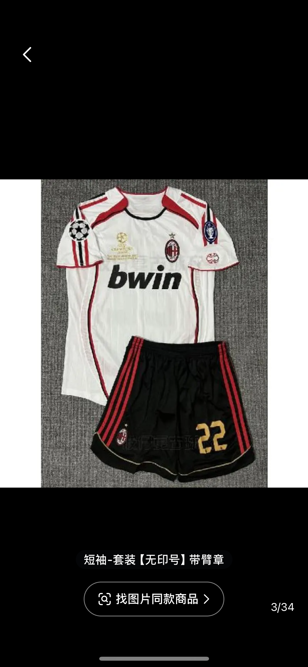 ac米兰06-07复古AC米兰22号卡卡球衣欧冠决赛版主场长袖经典足球训练服 666.00 已售:0件