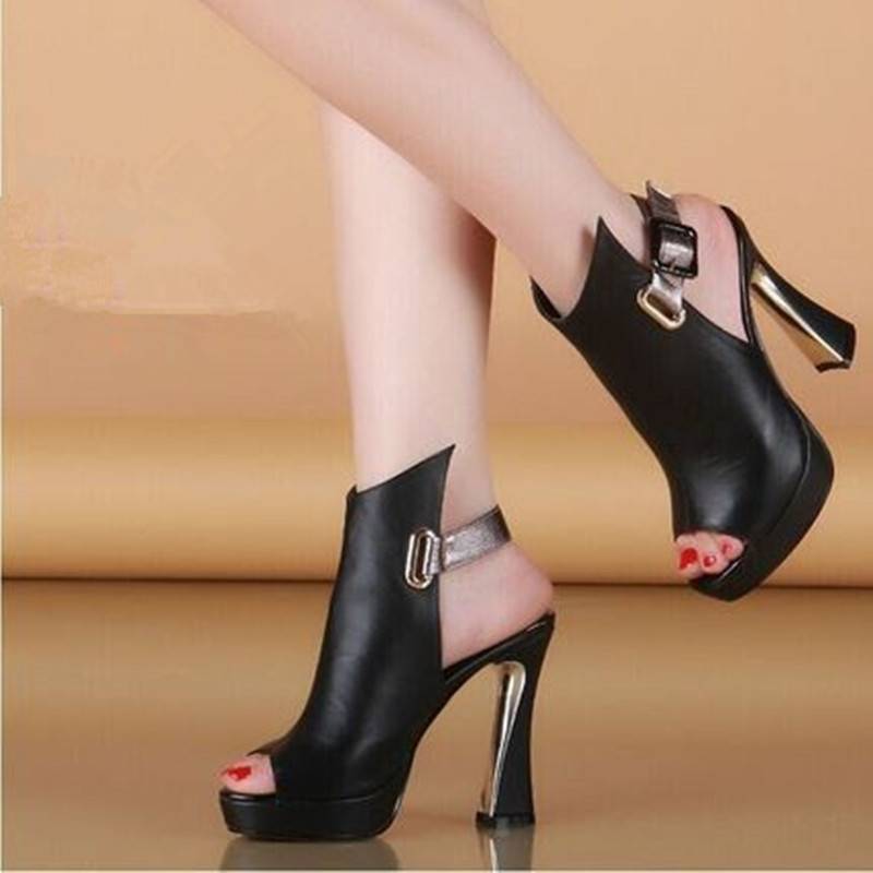 凉鞋女夏鱼嘴粗跟高跟鞋百搭真皮2018夏季新款白色大码小码女鞋子