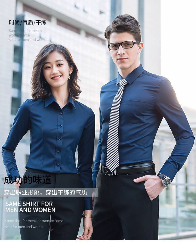 青年男女职业衬衫西裤套装修身商务正装4S店教师工作服长袖衬