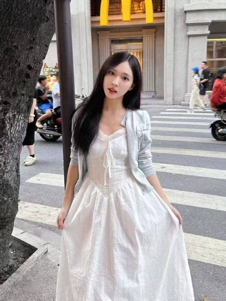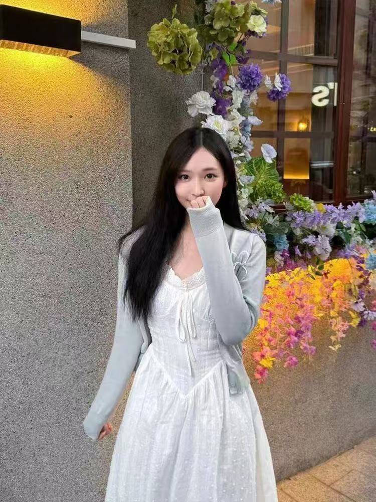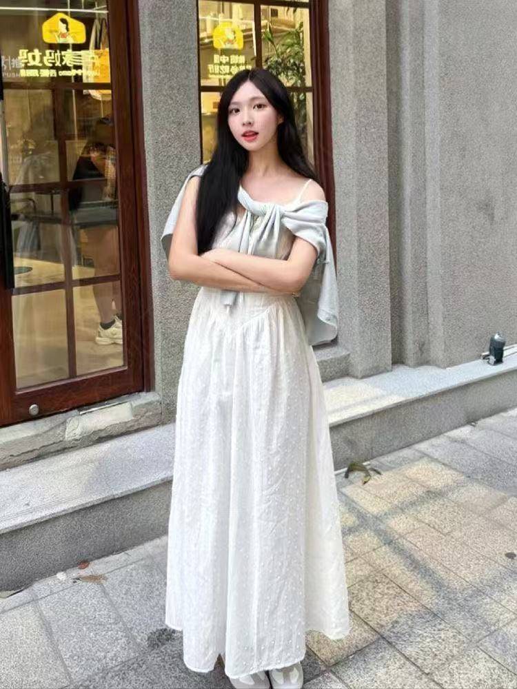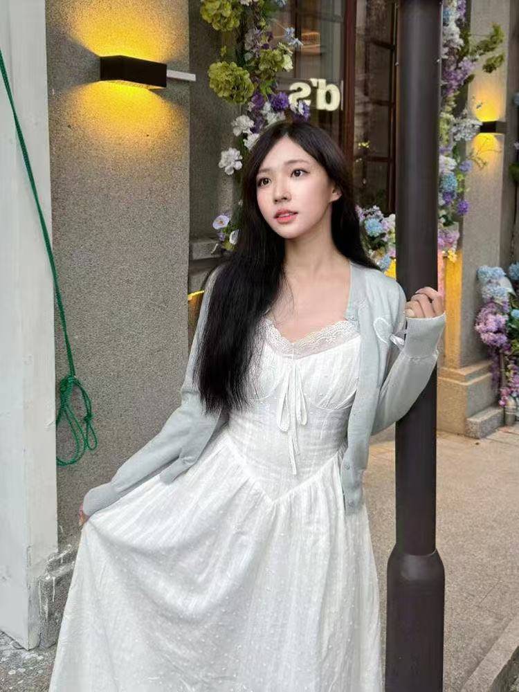 白月光氛围感蕾丝花边吊带连衣裙春季新款蝴蝶结爱心针织开衫套装