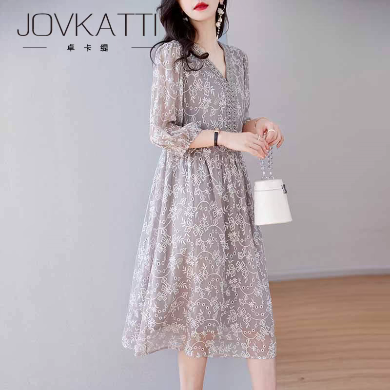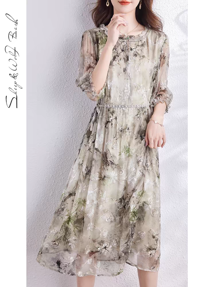 2025年新款高端真丝桑蚕丝连衣裙女夏季品牌时尚中长裙子 665.00 已售:0件
