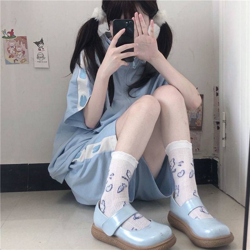 盐系套装女学生2022夏季韩版宽松短袖T恤 休闲阔腿五分短裤两件套