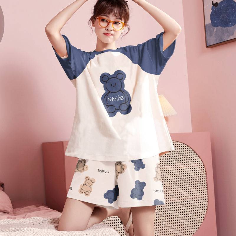 新款睡衣女夏季纯棉短袖学生可爱宿舍甜美短裤薄款两件套装家居服