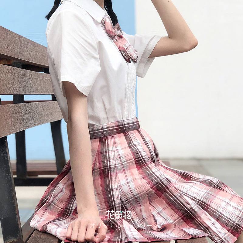 花田物【桃酥】原创正版jk制服格子短粉甜女百褶半裙日系学院风夏