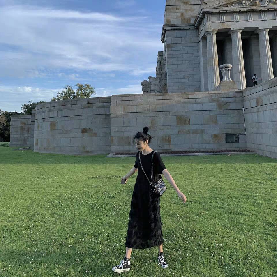 2019新款女装春装圆领短袖流苏沙滩裙中长款