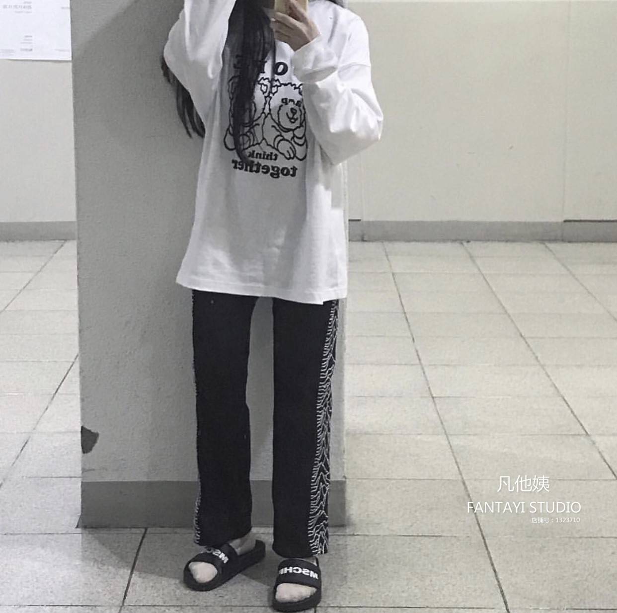 自制可爱小熊软糖印花宽松休闲长袖T恤打底衫男女同款ins