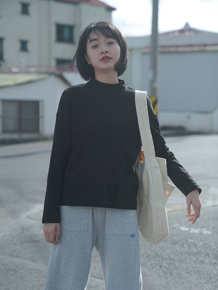 2019春季新款宽松高领纯色打底衫T恤女百搭长袖套头上衣