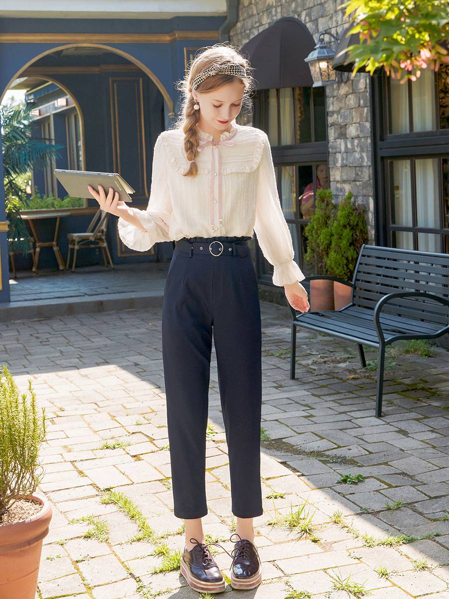 港味裤子女春装2019新款时尚宽松显瘦直筒裤chic小脚休闲裤