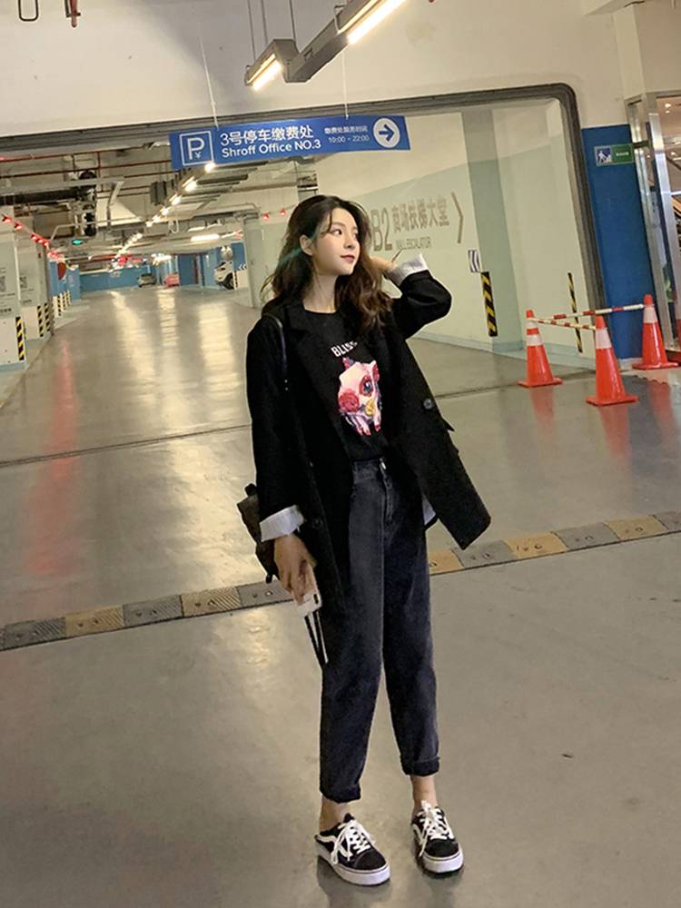 直筒老爹牛仔裤女宽松春季2019新款黑色显瘦高腰网红小脚萝卜裤子