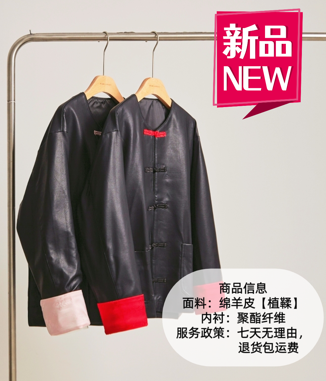 2025年春秋女装 国风新中式 刺绣拼接 翻边袖 植鞣皮皮衣外套短款上衣