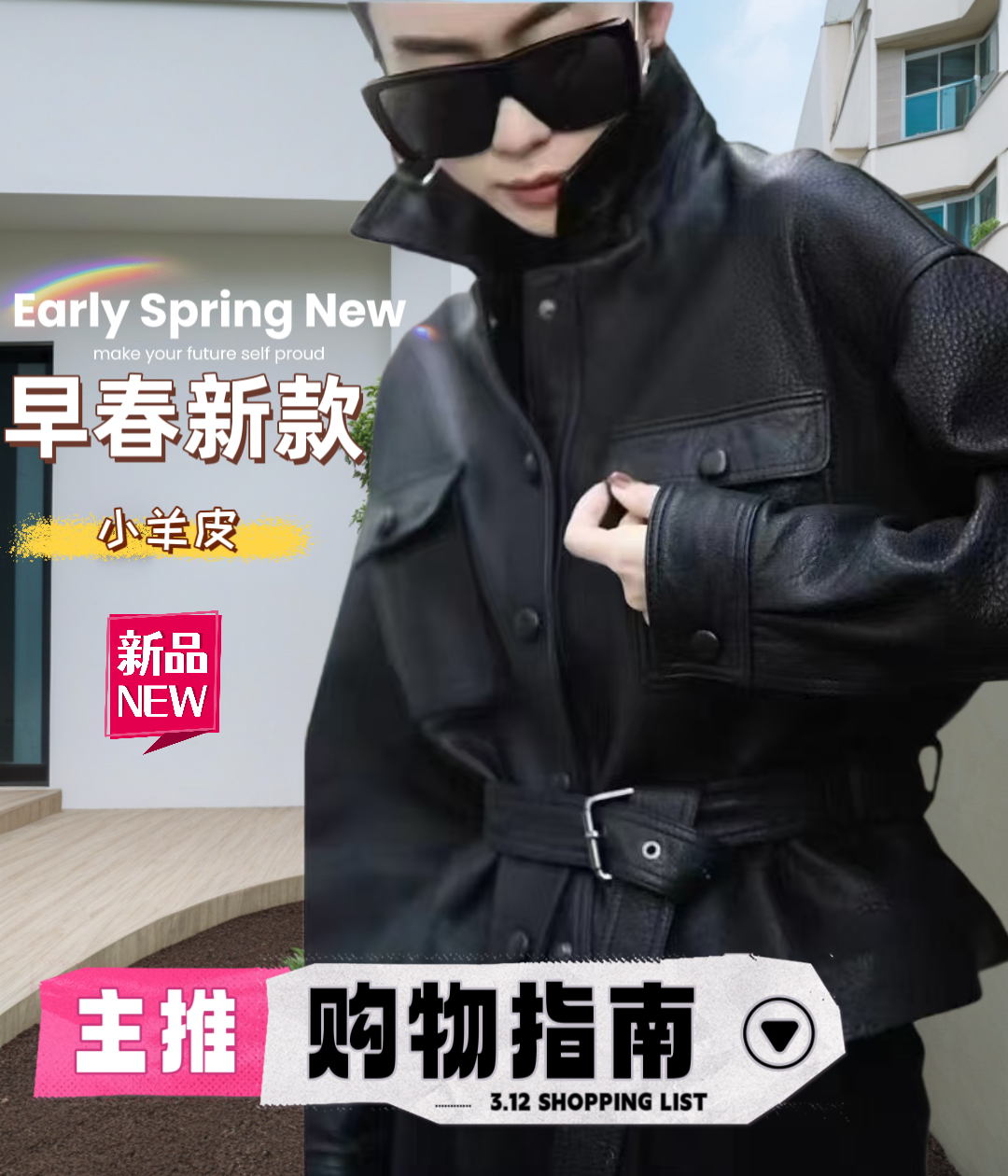 进口泡感羊皮宋佳同款绵羊皮短外套女2025春新款收腰显瘦真皮皮衣
