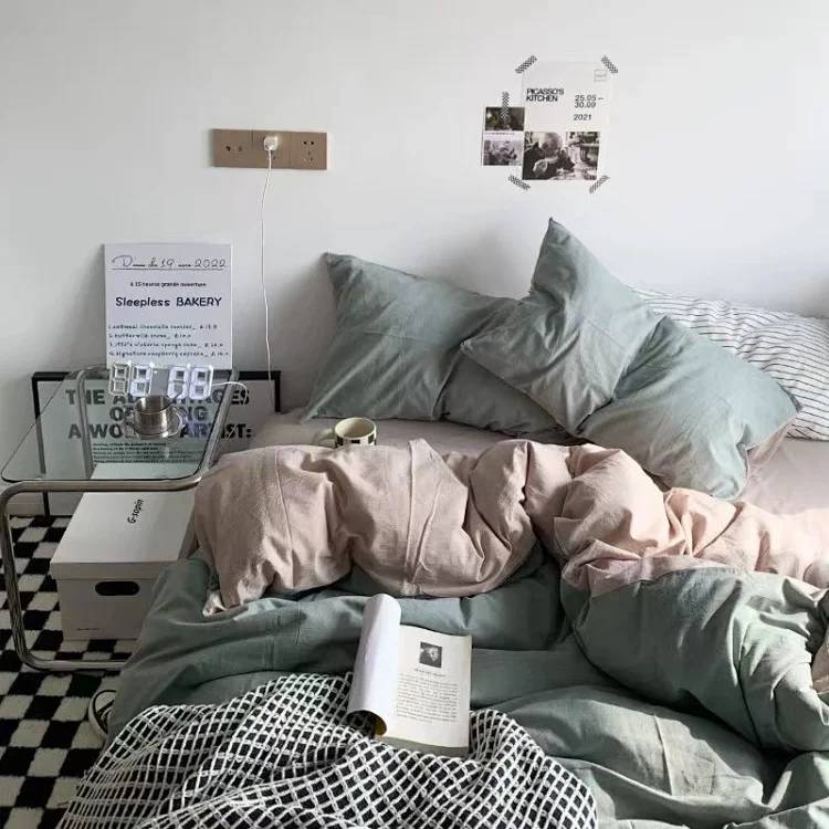 ins北欧风简约床上四件套三件套纯棉床单被罩枕套夏季学生居家