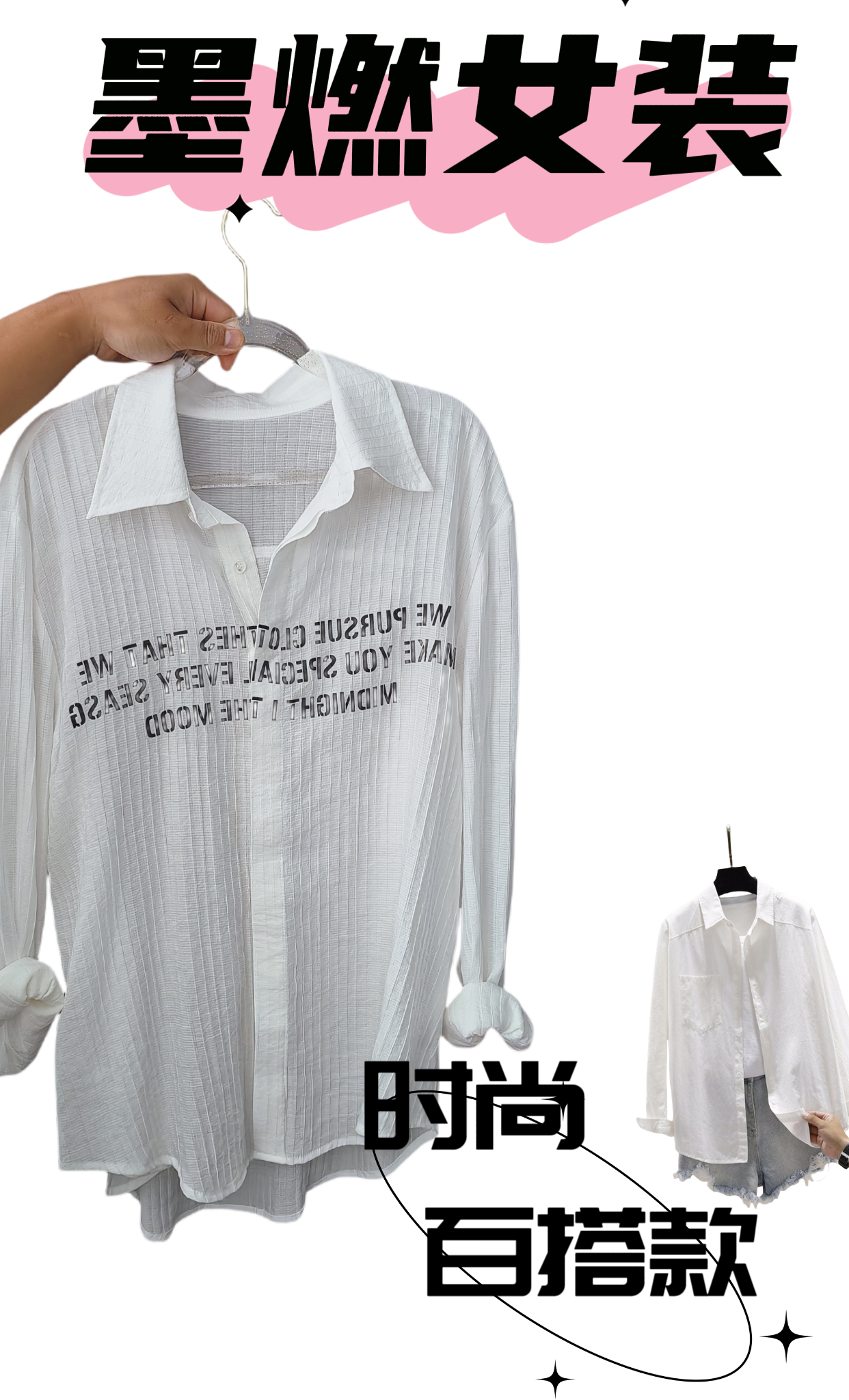 韩版时尚休闲百搭字母印花衬衫女2024夏季新款宽松显瘦百搭防晒衫 58.00 已售:0件