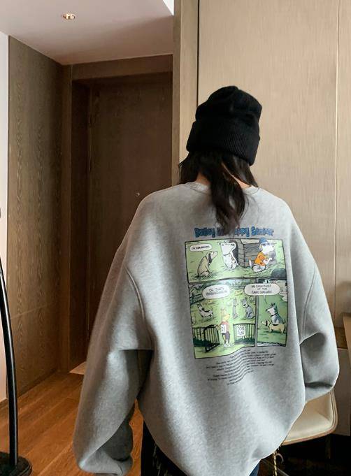 JHXC 减龄圆领卫衣女加绒加厚2021年秋冬新款潮宽松bf慵懒风上衣