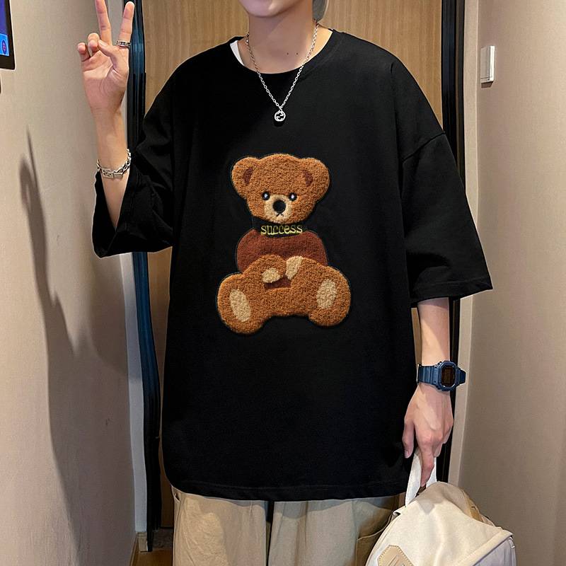 纯棉短袖t恤男2023夏季潮流ins五分袖体恤学生港风宽松情侣上衣潮