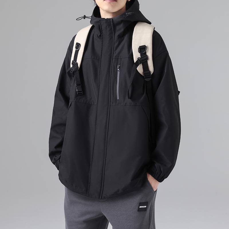 2023春秋款男士休闲夹克港风户外防风冲锋衣宽松连帽潮牌春装外套