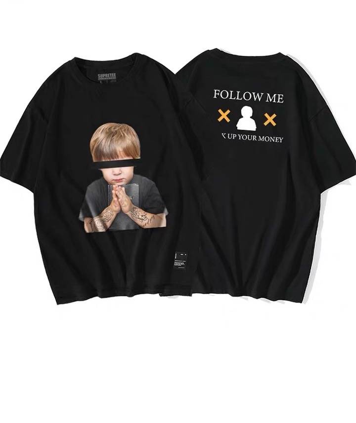欧美街头祈祷男孩短袖T恤男oversize宽松嘻哈bf落肩五分袖半袖潮 88.00 已售:0件