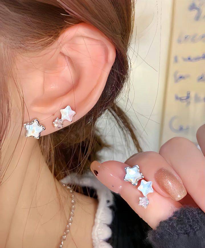 s925银浅蓝色星星系列耳钉春夏女大学生假期出游日常通勤