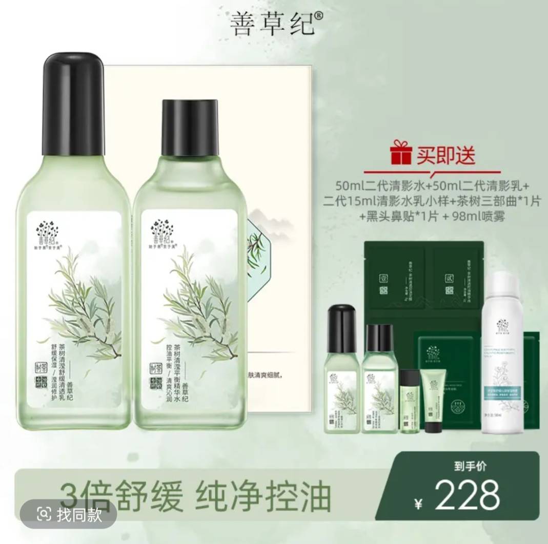 善草纪3倍舒缓,纯净控油护肤套装 218.00 已售:0件