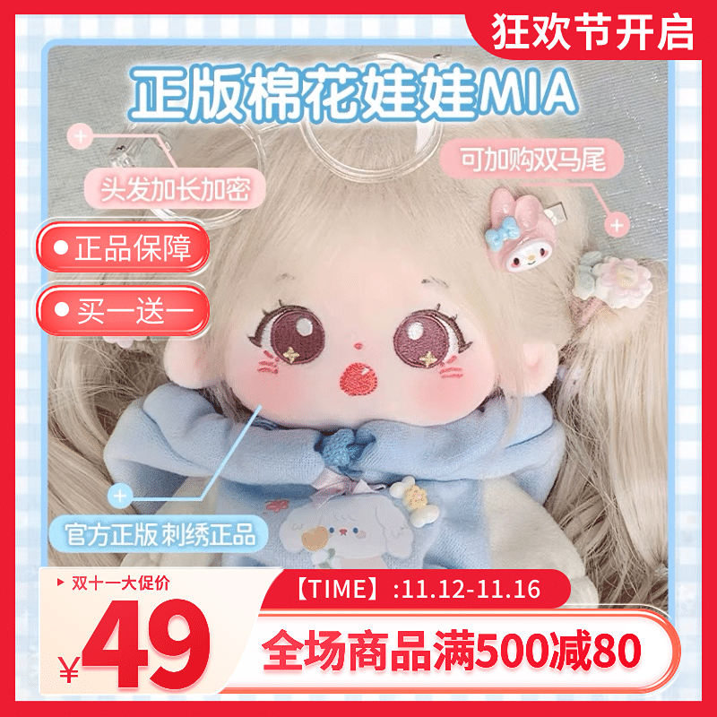 哇塞超可爱棉花星球 MIA棉花娃娃套装女孩娃衣服官方正品女孩20cm公仔正版 55.20 已售:0件