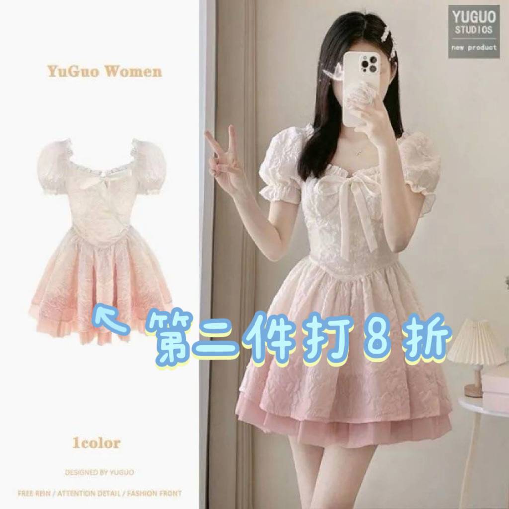 2025甜美渐变公主蓬蓬连衣裙夏季新款法式小个子收腰显瘦纯欲