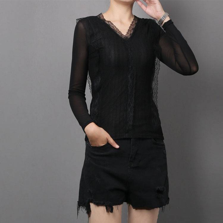 金屋欧洲站秋装新款女装高端蕾丝拼接修身薄款打底衫