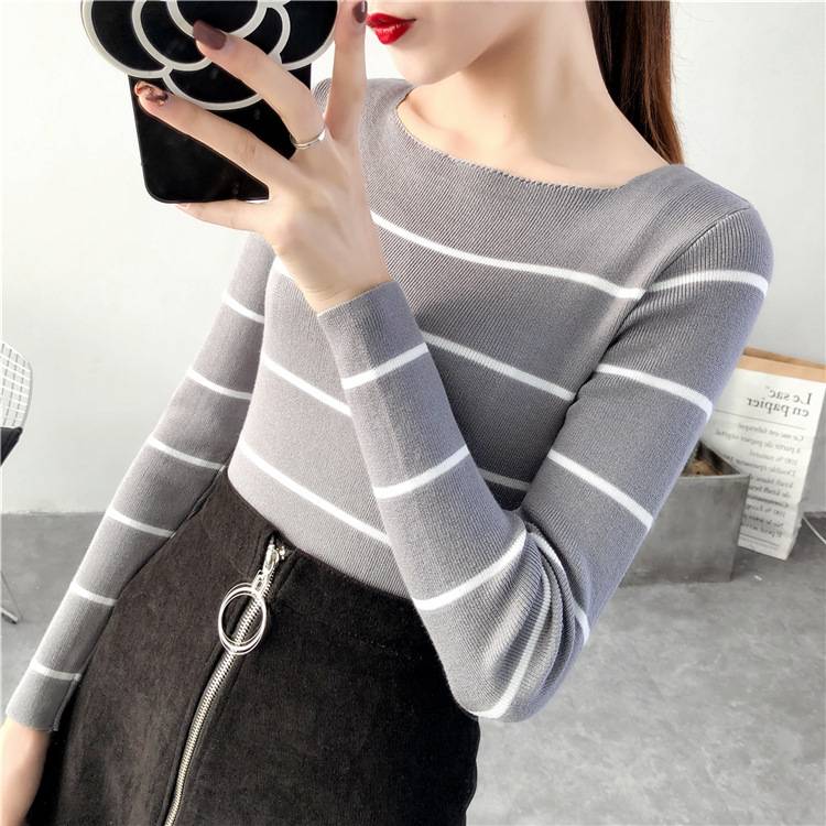 针织衫毛衣套头女装2018秋冬季新款百搭修身长袖打底衫chic一字领