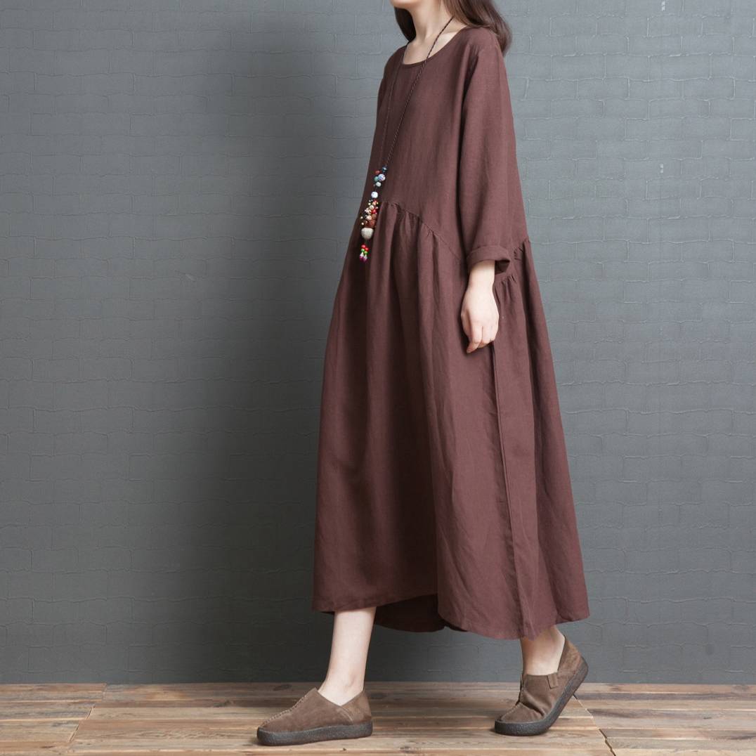 180斤胖mm秋装新款2018宽松大码女装亚麻减龄圆领长袖连衣裙子