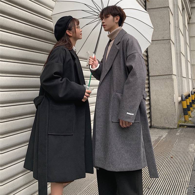 情侣装冬季呢子大口袋男加厚宽松东大门韩版外套中长款毛呢大衣女