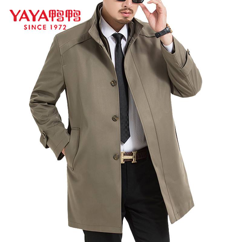 鸭鸭中老年风衣男秋冬装大码中长款外套爸爸装可拆卸内胆厚棉大衣