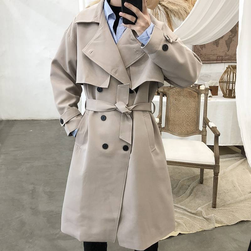 盛宏19秋超正M家经典不易皱 中长款双排扣显瘦气质外套风衣女3078