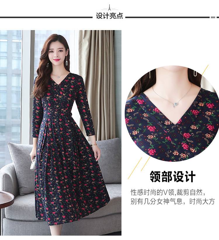 2018秋装新款女装韩版V领收腰显瘦针织长裙气质淑女碎花连衣裙潮
