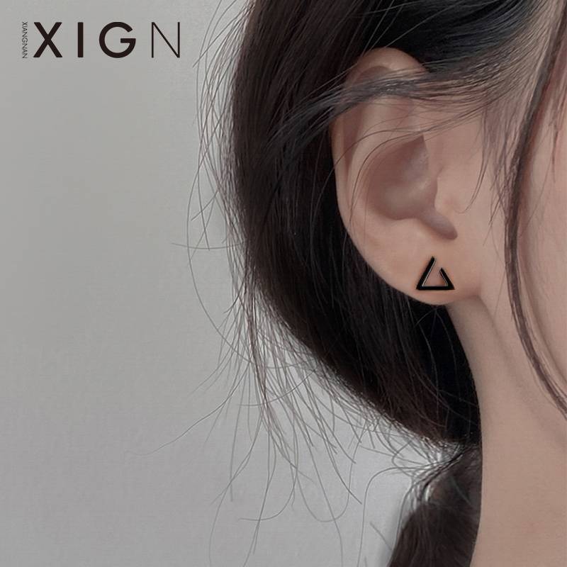XIGN黑色三角耳钉纯银简约几何耳环小众设计感冷淡风耳饰品女潮