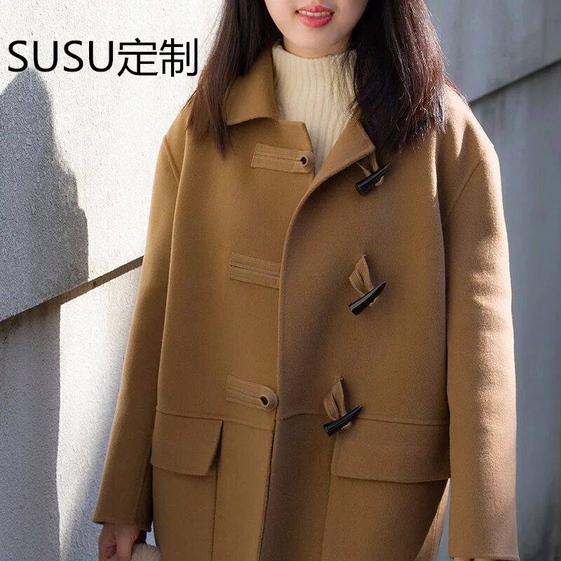 2020秋冬新款女保暖羊毛大衣色羊毛简约文艺毛呢大衣双面呢宽松潮