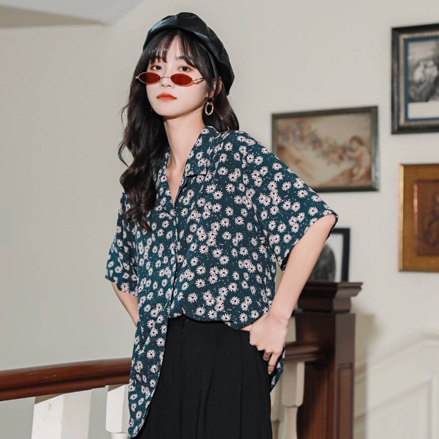 碎花雪纺衬衫女短袖2021夏季新款宽松复古港味开衫 199.00 已售:0件