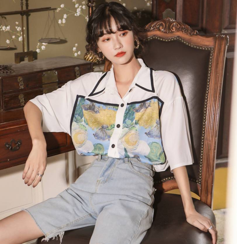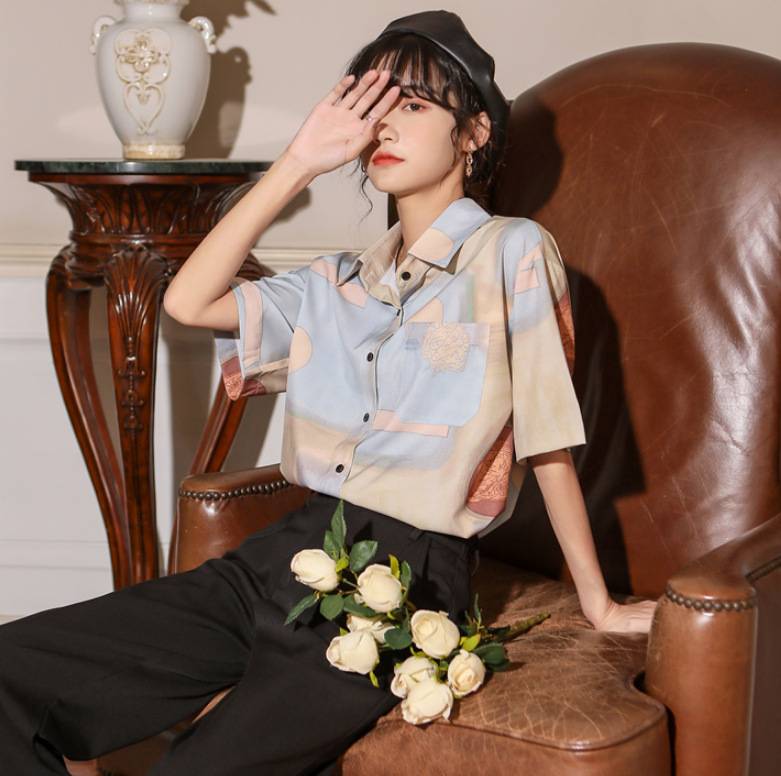 古着感港味短袖衬衫女新款设计感复古印花上衣 99.00 已售:0件