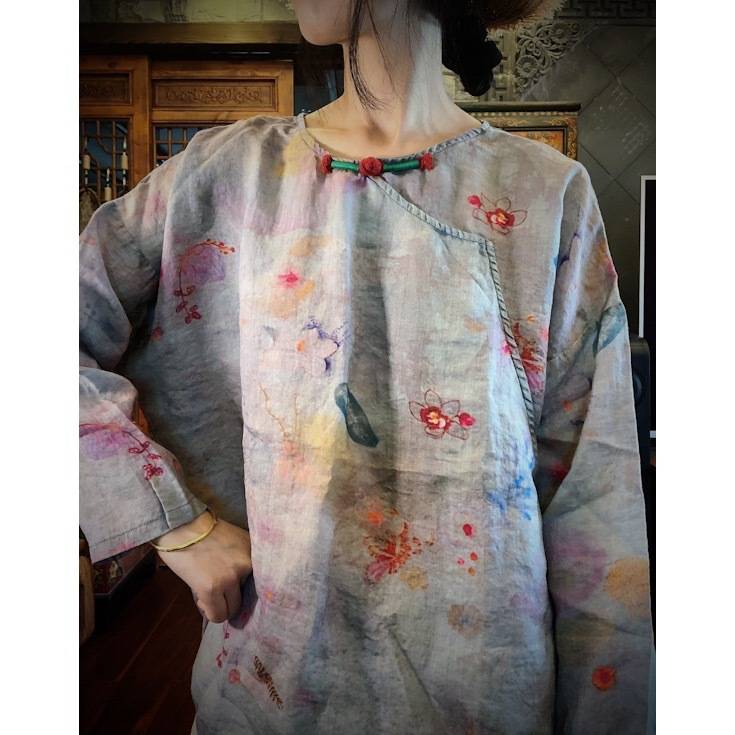 2022落古泥纯苎麻数码印花手工盘扣宽松小衫1654淡眉 199.00 已售:0件