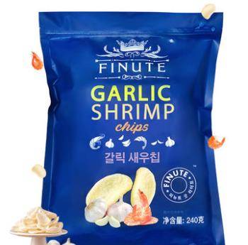 进口韩国趣莱福网红大包装鲜虾片蒜味薯片膨化办公室零食小吃240g