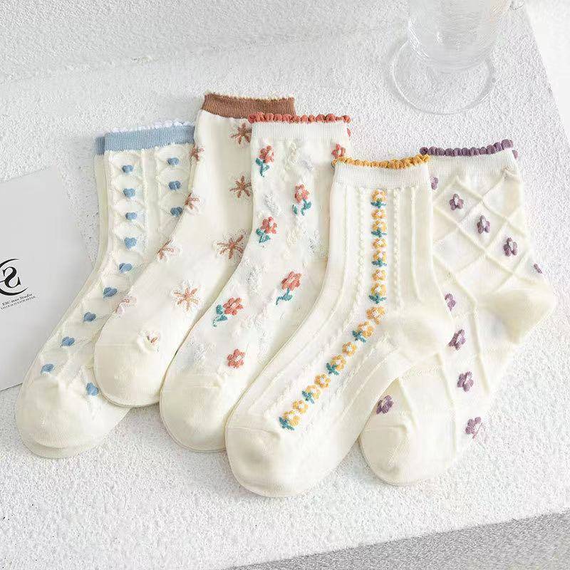 花边棉袜子女士中筒秋季韩版日系可爱学生长筒小清新短袜ins潮