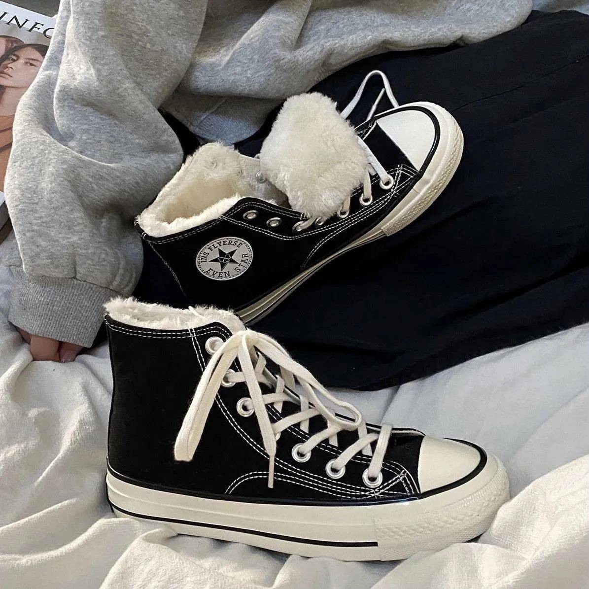 鳄鱼加绒高帮帆布鞋男学生韩版潮流百搭1970s复古情侣板鞋休闲鞋