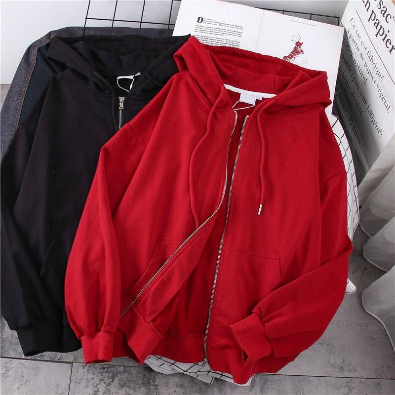 卫衣女2021新款宽松韩版连帽加绒加厚拉链外套潮ins秋冬季
