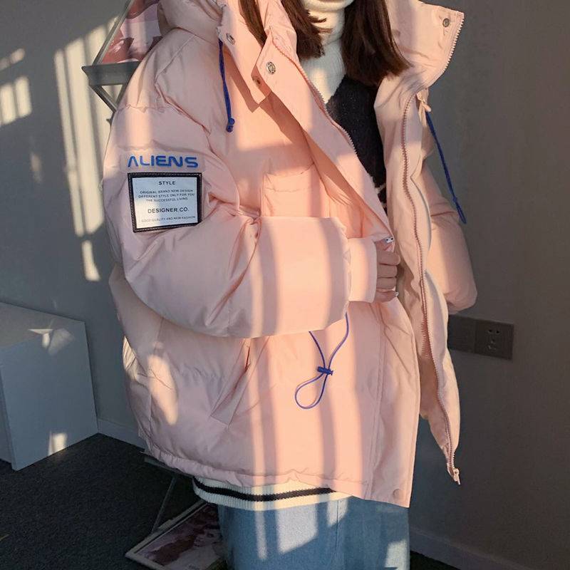 2021冬季韩版抽绳加厚连帽羽绒面包服宽松白色短款洋气羽绒外套女