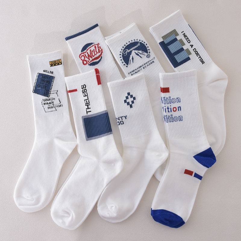 袜子男潮流百搭男款中长男生篮球袜中筒防臭运动白色ins潮男长筒