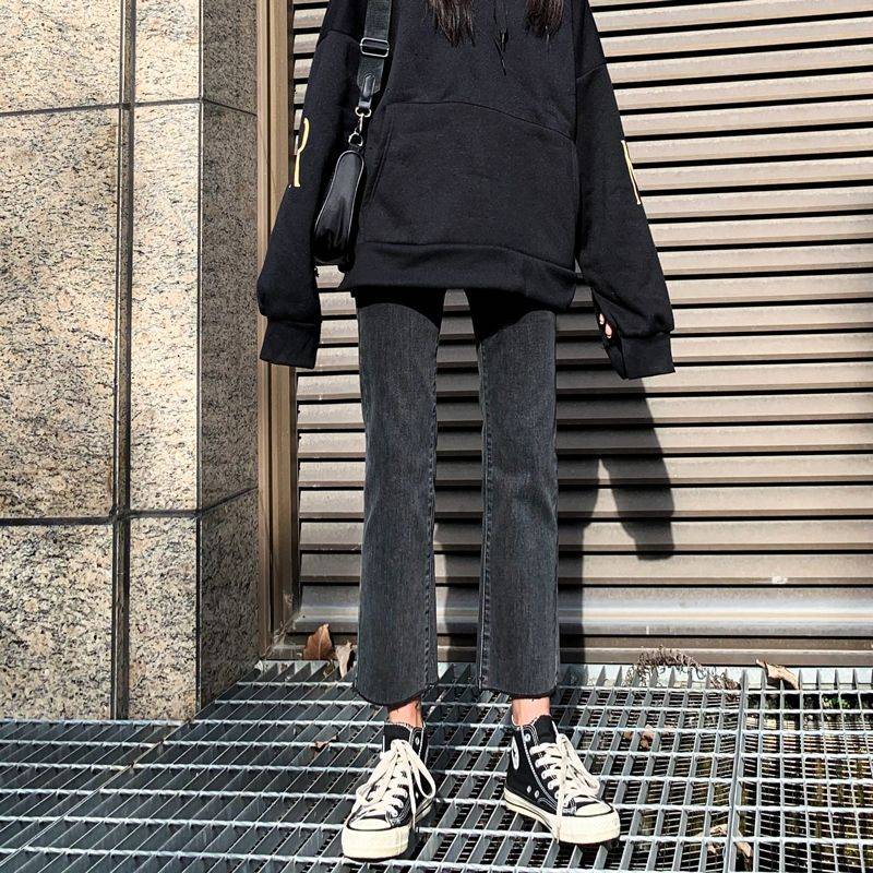 黑色牛仔裤女直筒裤宽松新款秋冬高腰加绒修身显高显瘦烟管九分裤