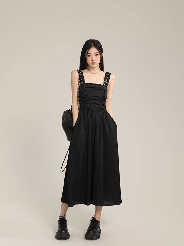 2toyoung机能风辣妹 白色连衣裙女夏季小个子气质显瘦背带长裙女装
