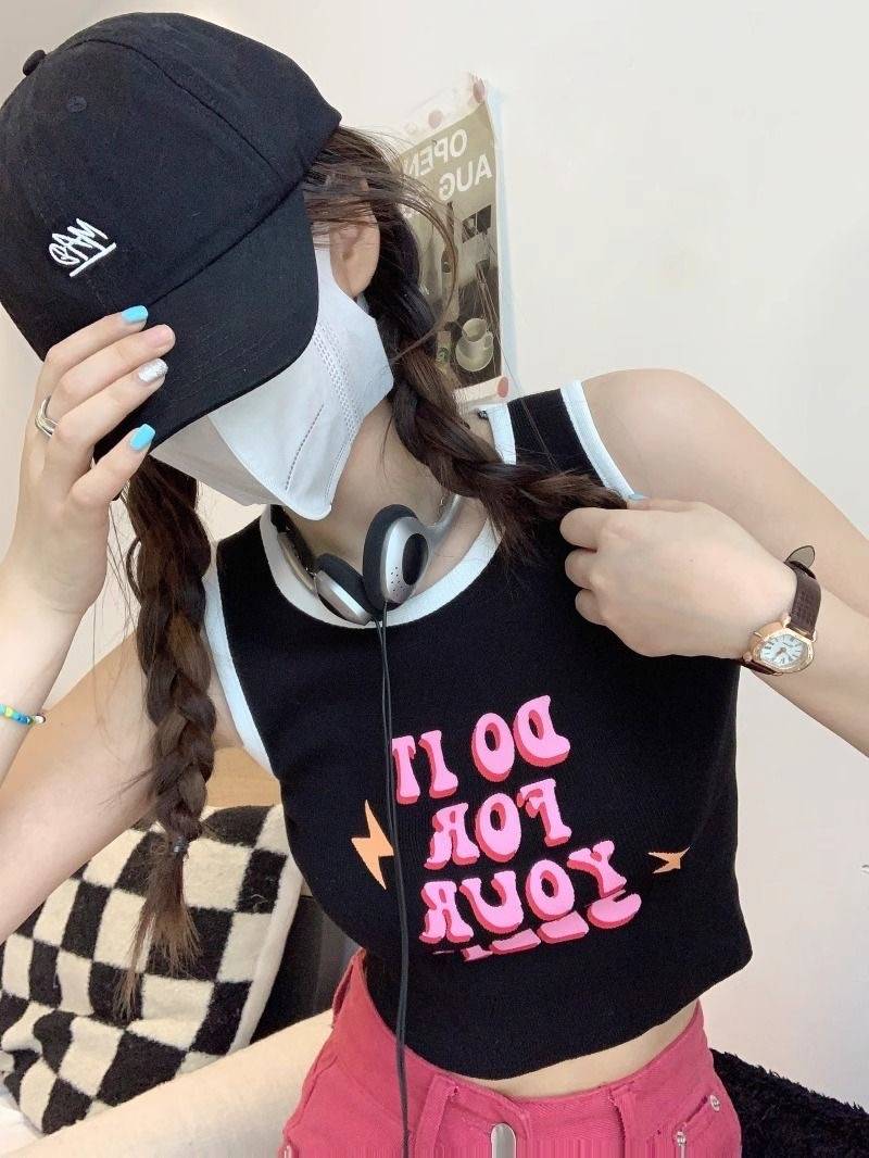 夏季少女系短款上衣女夏韩版新款2023辣妹风穿搭星星车花无袖背心