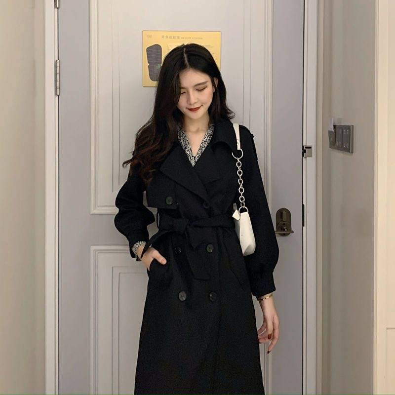 2019秋季新款品牌女装英伦气质纯色长袖西装领双排扣女式风衣外套