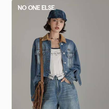 又一间女装店拼接牛仔外套女2023春秋新品美式复古水洗宽松上衣